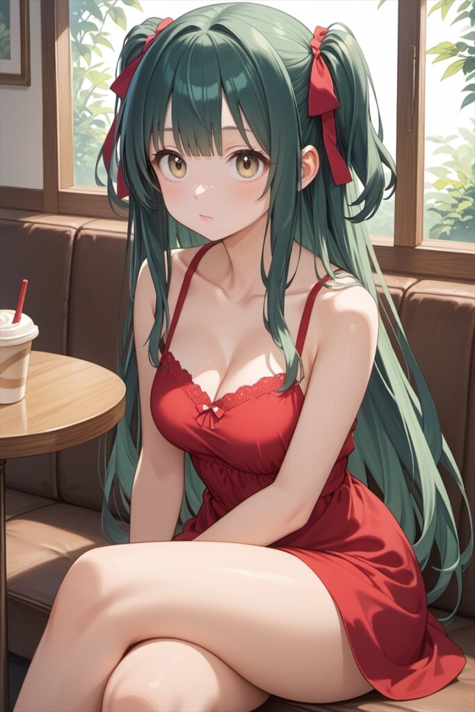 - その他:thick thighs, sitting with legs crossed(むちむちの太もも、足を組んで座る)