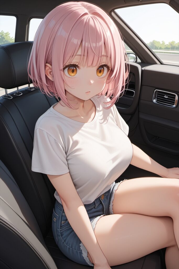 - その他:thick thighs, sitting in car seat(むちむちの太もも、車のシートに座る)