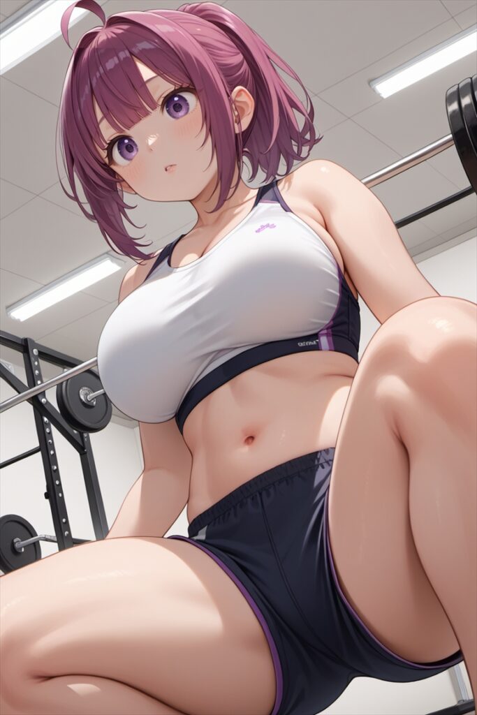 ジムでトレーニング中のむちむち太ももの女の子のエロいAIイラスト
